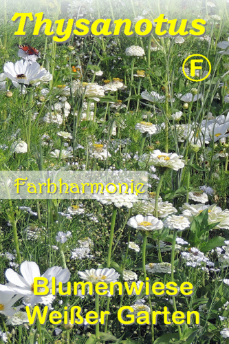 Diese zauberhafte Mischung überzeugt durch ihre leuchtend weiße Klarheit aller Blüten mit einer Vielfalt von 19 einjährigen Blumenarten. Bei zeitiger Aussaat im April-Mai erscheinen die Blüten im Frühsommer und blühen teilweise bis in den Herbst hinein. Das Blütenbild verändert sich im Laufe der Blütezeit.