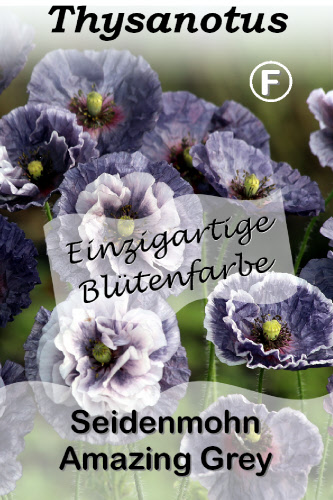 Papaver rhoeas. Ein vollkommen neuer, einfach bis gefüllt blühender Seidenmohn mit einer Blütenmelange in allen erdenklichen Grautönen. Dieses absolut einzigartige Farbenspiel beschert magische Sommerblumenbeete. Perfekt in Ergänzung mit weißen und schwarzen Blüten.
