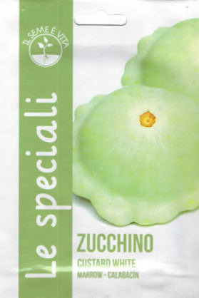 Schneeweißer diskusförmiger Squash-Kürbis mit einem bananen-weichem Fruchtfleisch. Offener Wuchs, sehr gut geeignet für die gesamte Freilandsaison. Sehr ertragreich und lange Erntezeit. Zubereitung: im Ofen gebacken, in der Pfanne gebraten, gedämpft, paniert gebraten, gegrillt und gefüllt. Auch zur Lagerung und Deko geeignet.Aussaatzeit: ab April im temperierten Gewächshaus oder im Mai-Juni direkt ins Freiland säenKeimung: 7-10 Tage, 20-26 ° C, 12 mm tiefStandort: sonnig bis schattig, alle warmen, sehr nahrhaften BödenErntezeit: ab August bis zum Frost