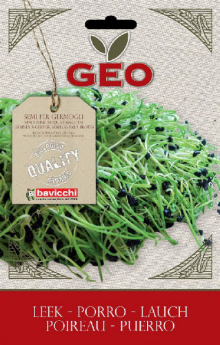 Lauch Es ist viel einfacher und schneller, rohe Lauchtriebe zu verdauen als die reife Pflanze, dank des Vorhandenseins von lebendem Chlorophyll, das in der Keimphase produziert wird und als natürlicher Atemerfrischer wirkt. Lauchsprossen haben lange Keimzeiten: Die ersten Sprossen sprießen nach 1 Woche und die vollständige Keimung erfolgt nach 2 Wochen. Um das Wachstum zu erleichtern und zu beschleunigen, ist es ratsam, die Samen während der Zeit im Wasser und in den ersten beiden Tagen der Keimung an einen warmen Ort zu stellen. Sprossen sind sehr reich an Aminosäuren und Enzymen, Vitaminen und Mineralstoffen, die für den Prozess der Zellerneuerung notwendig sind.