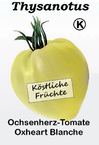 Solanum lycopersicum. Die typische Form des Rinderherzens, jedoch cremeweiße, spitze, hellgrün geäderte Spitzfrüchte mit einem Gewicht von 250-400 g. Das zart rosa-weiße Fruchtfleisch hat einen sehr mildem Geschmack und eine gute Textur und nur wenige Kerne. Sehr guter Ertrag. Das Entfernen der Blattachseltriebe steigert den Ertrag. Regelmäßig flüssig nachdüngen.