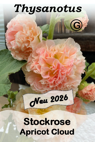 Eine zauberhafte, gefüllt blühende Stockrose mit rosig, aprikotfarbenen Blüten, teilweise changierend. Sie bringt einen zarten Aspekt in den Garten. Kübelkultur ebenfalls empfehlenswert.