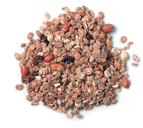 Für den guten Start in den Tag empfiehlt sich dieses energiereiche Müsli an der Futterstelle. Gefettete Hafer- und Weizenflocken, Erdnüsse und Rosinen unterstützen den Wärmehaushalt von Amsel, Rotkehlchen, Drossel, Zaunkönig vor und nach klirrend kalten Winternächten. Einfach in ein Vogelhaus oder an eine geschützte Bodenfutterstelle streuen. Für Amsel, Rotkehlchen, Buntspecht.